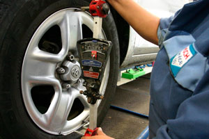 Si tus ruedas se desgastan muy rápido, o al conducir el vehículo este se va hacia uno de los lados o vibra cuando aumentas de velocidad, puede que tus llantas estén mal alineadas. Debes acudir a un taller de confianza para que alineen las ruedas de tu coche, permitiendo que la parte delantera y trasera estén posicionadas paralelamente entre sí y con el eje central de la vía. Como consecuencia tu coche pueden mantener la dirección en línea recta sin usar el volante.